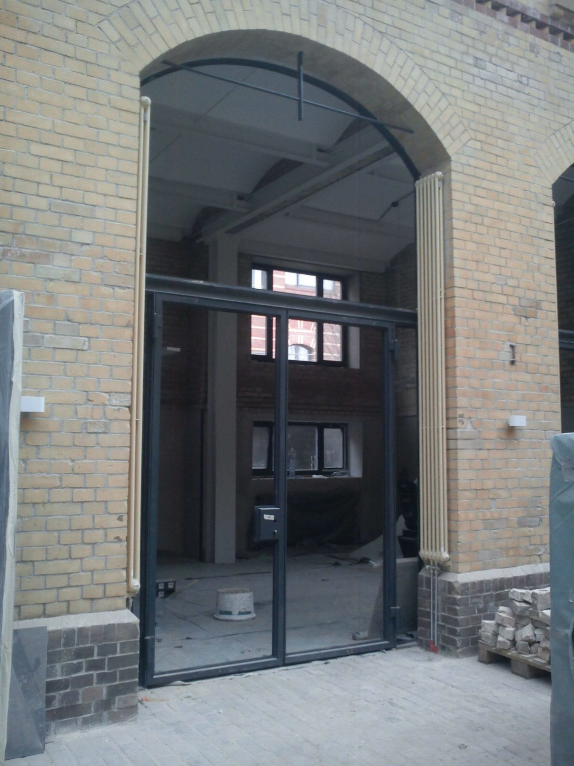 Each glass pane is meticulously installed within the frame before the door is finished with grinding and a durable powder coating in matte black (resembling RAL 9005, Jet Black) for a sophisticated look and enhanced longevity. The assembly includes high-quality hinges and a secure locking mechanism. We finalize our doors with a careful packing process to ensure it arrives in pristine condition ready for installation.